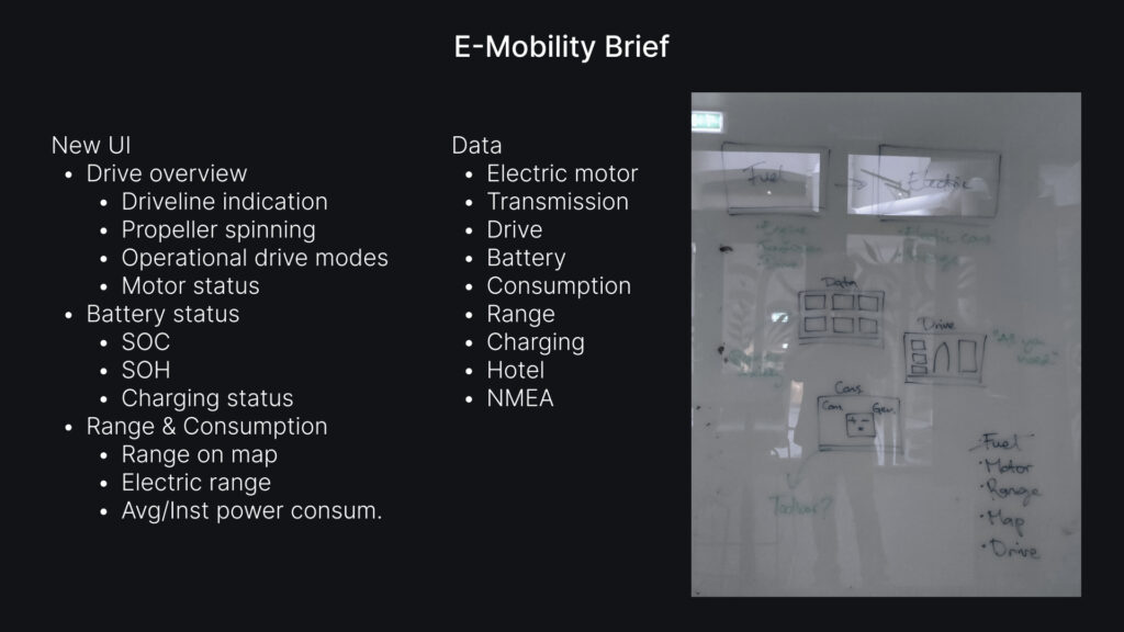 During my time at Penta, my flagship project focused on electric boats, addressing the rising demand for electric propulsion in marine contexts. I played a key role in efforts to seamlessly integrate Glass Cockpit with cutting-edge technology for these vessels, involving detailed planning, collaboration with cross-functional teams, and the integration of e-mobility features. In envisioning Volvo Penta’s electric boat segment’s future, we identified diverse user needs, ranging from water sport enthusiasts to yacht owners. To ensure our solutions met these needs, my team and I conducted extensive user studies and benchmarks.